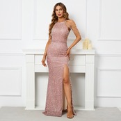YIDINGZS オフショルダーロングビーズゴールドスパンコールドレスセクシーなスリットパーティードレスの女性のイブニングドレス