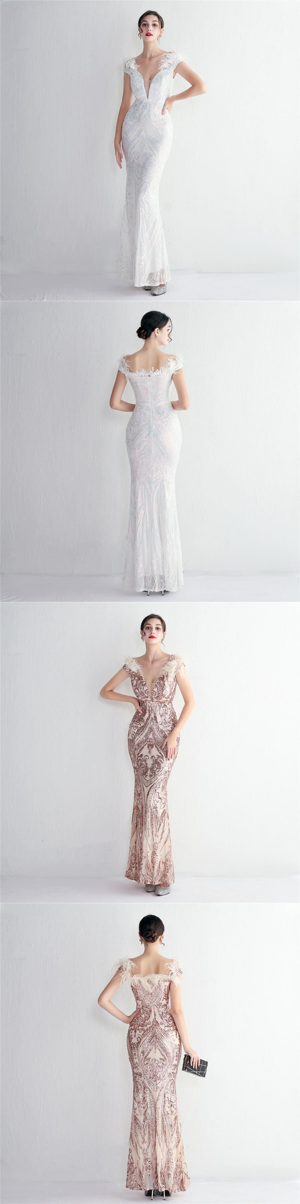 YIDINGZS 女性の羽ロングウエディングドレスオフショルダーシルバースパンコールイブニングドレスセクシーなパーティーマキシドレス 19511 銀