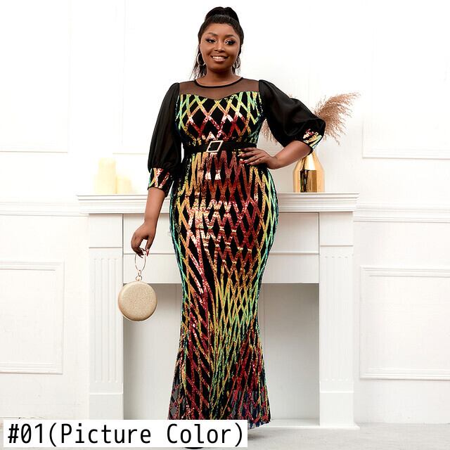 プラス サイズ ストレッチ真っ赤なスパンコール イブニング ドレス長袖マーメイド イブニング ナイト パーティー マキシ ドレス ベルト付き ロング レッド 大きめサイズ ハーネス | transfom