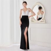 YIDINGZS ブラックストラップベロアドレスセクシーなスリットスパンコールイブニングドレス女性のパーティーマキシドレスロングウエディングドレス