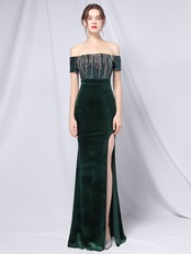 YIDINGZS シャンパンスパンコールマキシドレスオフショルダー女性ロングウエディングドレスベロアイブニングパーティードレス
