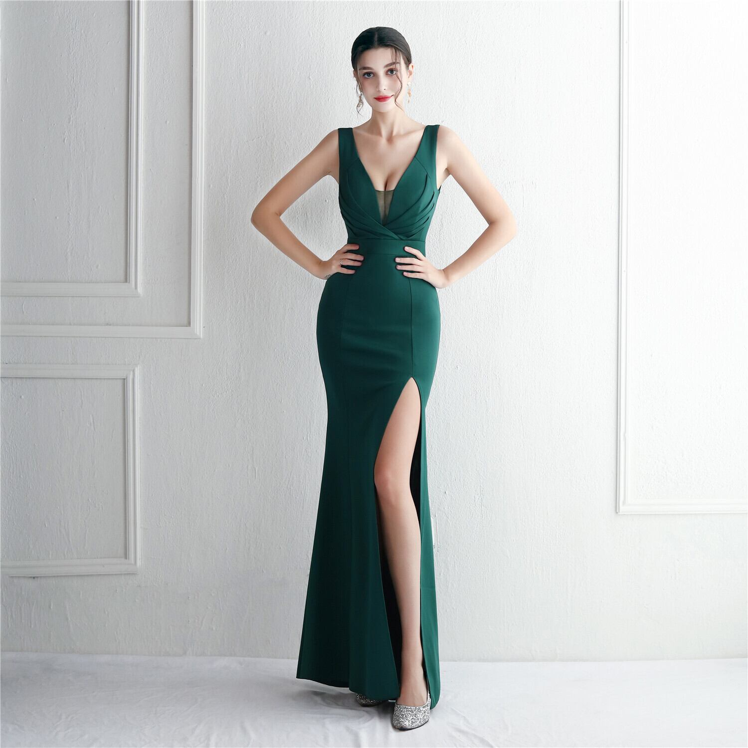 YIDINGZS キャンディーカラーの女性パーティーマキシドレス黒ソフトサテンセクシーな V ネックのイブニングドレスロングウエディングドレス ブラック Vネック