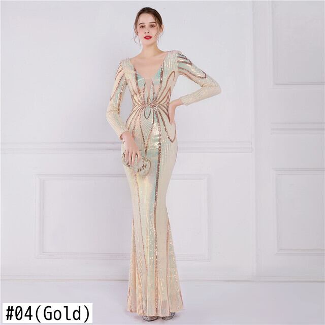 YIDINGZS ストレッチ バーガンディ スパンコール マキシドレス フルスリーブ Vネック マーメイド イブニング ナイト ロング パーティードレス