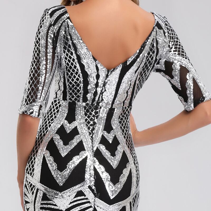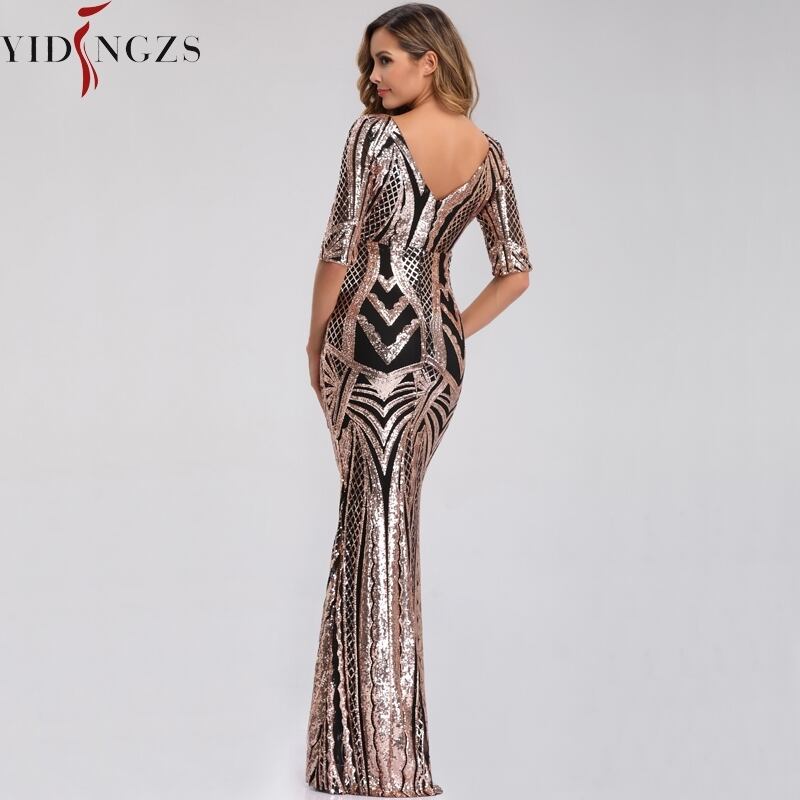 YIDINGZS VネックシルバースパンコールイブニングパーティードレスハーフスリーブマルロングイブニングドレスYD663 半袖 銀