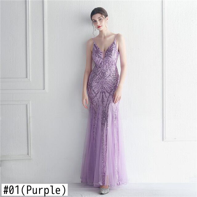 YIDINGZS グリーンスパンコールドレスストラップパーティーマキシドレスセクシー V ネックイブニングドレスロングウエディングドレス Vネック