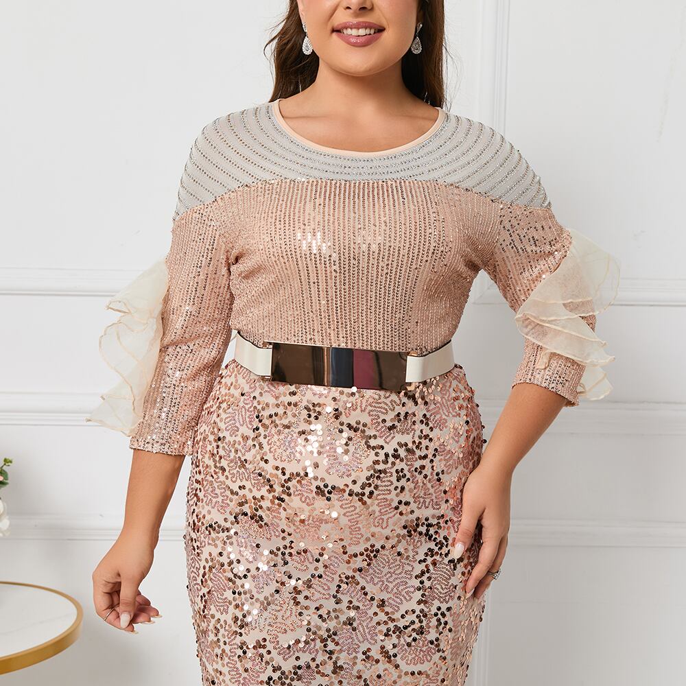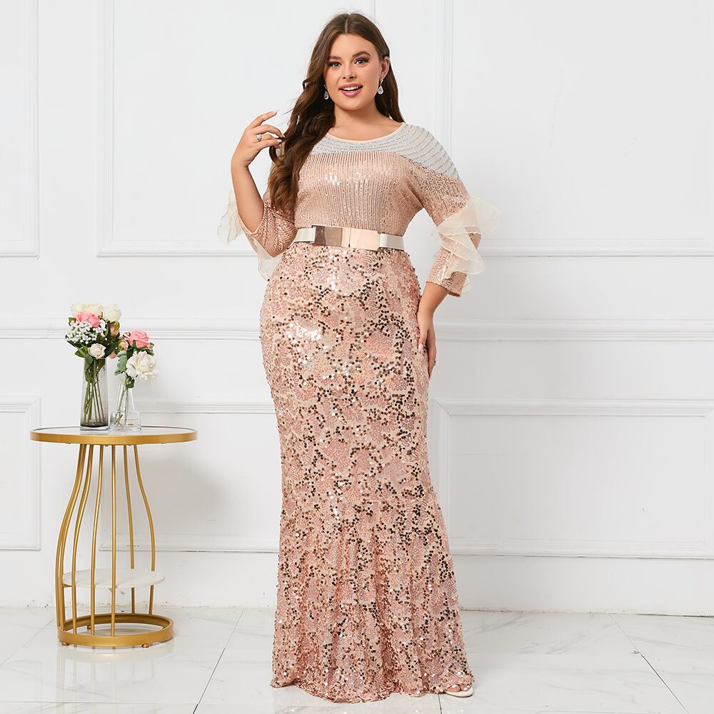 プラスサイズイブニングドレスドバイトルコ高級スパンコールドレスアフリカマーメイドドレスウェディングパーティーブライドメイドロングローブ 大きめサイズ